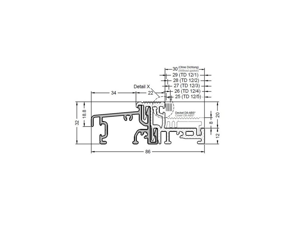 - Typ prahu: BS WESER 86/32-TI. Označenie "BS" znamená "Bodenschwelle" (podlahový prah), "TI" znamená tepelne izolovaný.