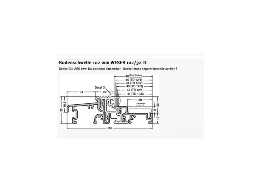 Dverový prah GUTMANN WESER 102/32-TI E6 je hliníkový prah so striebornou povrchovou úpravou EV1 a integrovanou termickou izoláciou