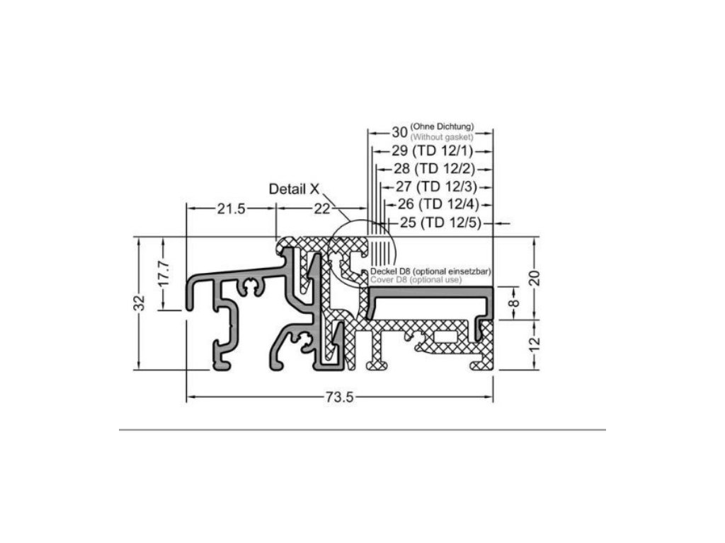 - 75-TI: Šírka prahu je 75 mm, zatiaľ čo "TI" označuje, že ide o tepelnoizolačný variant s prerušeným tepelným mostom. To pomáha zabrániť prenosu chladu a úniku tepla.