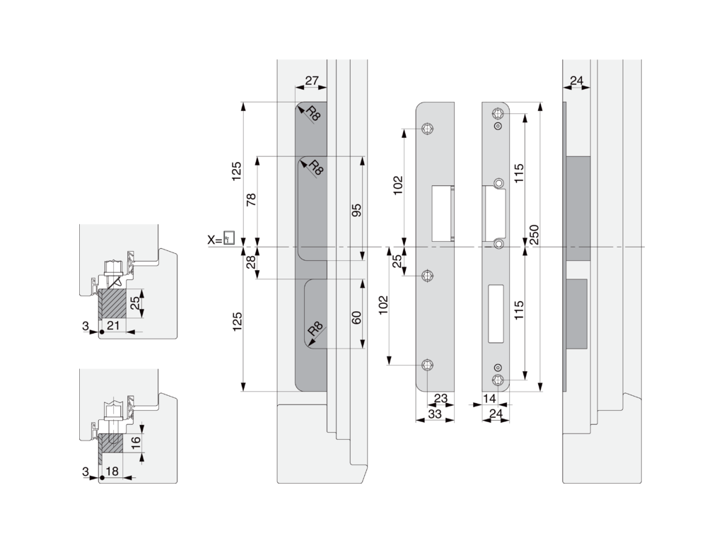 MACO 210016 Dverový uzáver pre elektro vrátnik 12/24-13mm Pravý